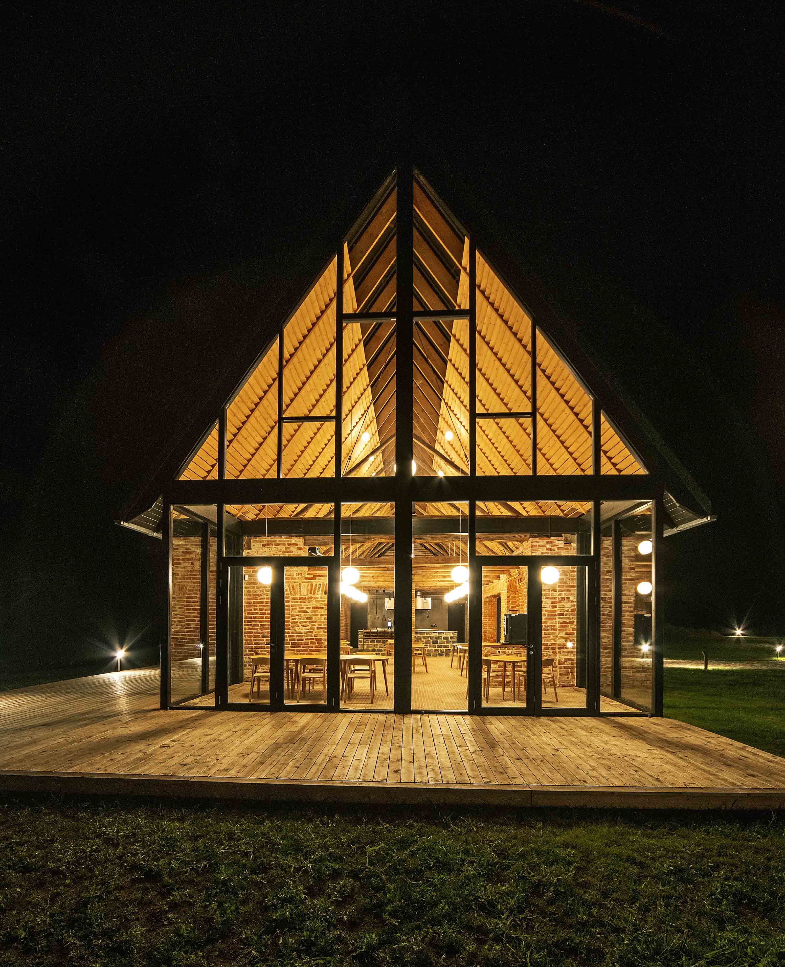 Farmers Circle tai naujam gyvenimui prikeltas senas ūkis 500ha kalvotoje teritorijoje Ukmergės rajone pristatantis ūkininkystę kaip įvykį. Be įpratinių daržovių laukų ir besiganačių galvijų, čia įkurdintas konferencijų centras, restoranas, viešbutis, naujai įrengti pažintiniai takai ir terasos su lauko židiniais. Pagrindinis architektūrinis ir urbanistinis uždaviniai buvo surasti harmoningą santykį tarp kaimo gamtos, sukultūrinto landšafto, senųjų ūkinių pastatų, šiuolaikinės architektūros bei kasdieninės ūkininkystės. Farmers Circle is an old farm revived in a 500-hectare hilly area in Ukmergė district, presenting farming as an event. In addition to the usual vegetable fields and grazing cattle, there is a conference center, restaurant, hotel, newly equipped nature trails and terraces with outdoor fireplaces. The main architectural and urban challenges were to find a harmonious relationship between rural nature, cultured landscape, old farm buildings, modern architecture and everyday farming.