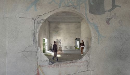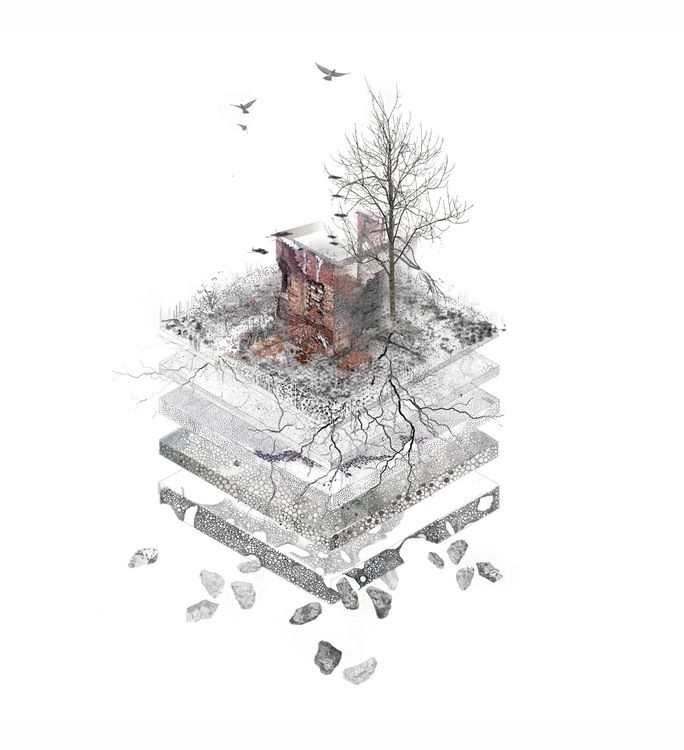 Šiuo projektu keliami klausimai apie vertybes. Ar "modernūs" griuvėsiai turi teisę išlikti? Kokia tokios architektūros vertė? Ar turime drąsos pakeisti nušlifuotą, efektyvų, pelningą architektūros įvaizdį į tokį, kuris labiau gerbia gamtą, laiką ir kontempliaciją? Apleista architektūra gamtoje tampa pamatu naujai patirčiai kurti. Pastatuose ir prie jų- identifikuojami ir kuruojami vietiniai augalai. Laiko perspektyvoje apleistos architektūros ir gamtos simbiozė kinta, stiprėja, kuriasi naujos erdvės ir patirtys. Plyšys skatina vaizduotę, netobulumas ir griūtis atveria kelią interpretacijai, naujų scenarijų kūrimui. Neapibrėžtumas suteikia žmonėms galimybę savarankiškai naujai interpretuoti vietas, istoriją ir ateitį. Ir galbūt, net savo pačių gyvenimus. This project raises questions about values. Do "modern" ruins have the right to survive? What is the value of such architecture? Do we have the courage to change the polished, productive, and profitable image of architecture to one that has more respect for time, nature, and contemplation? Abandoned architecture in nature becomes a foundation for new experiences. Native plants are found in or around buildings and then curated. Over time, the symbiosis between abandoned architecture and nature changes and strengthens, creating new spaces and experiences. Decay triggers imagination and contemplation, imperfection opens the way for the creation of new scenarios. The undefined nature gives people the opportunity to independently reinterpret places, history, and the future. And perhaps even their own lives.