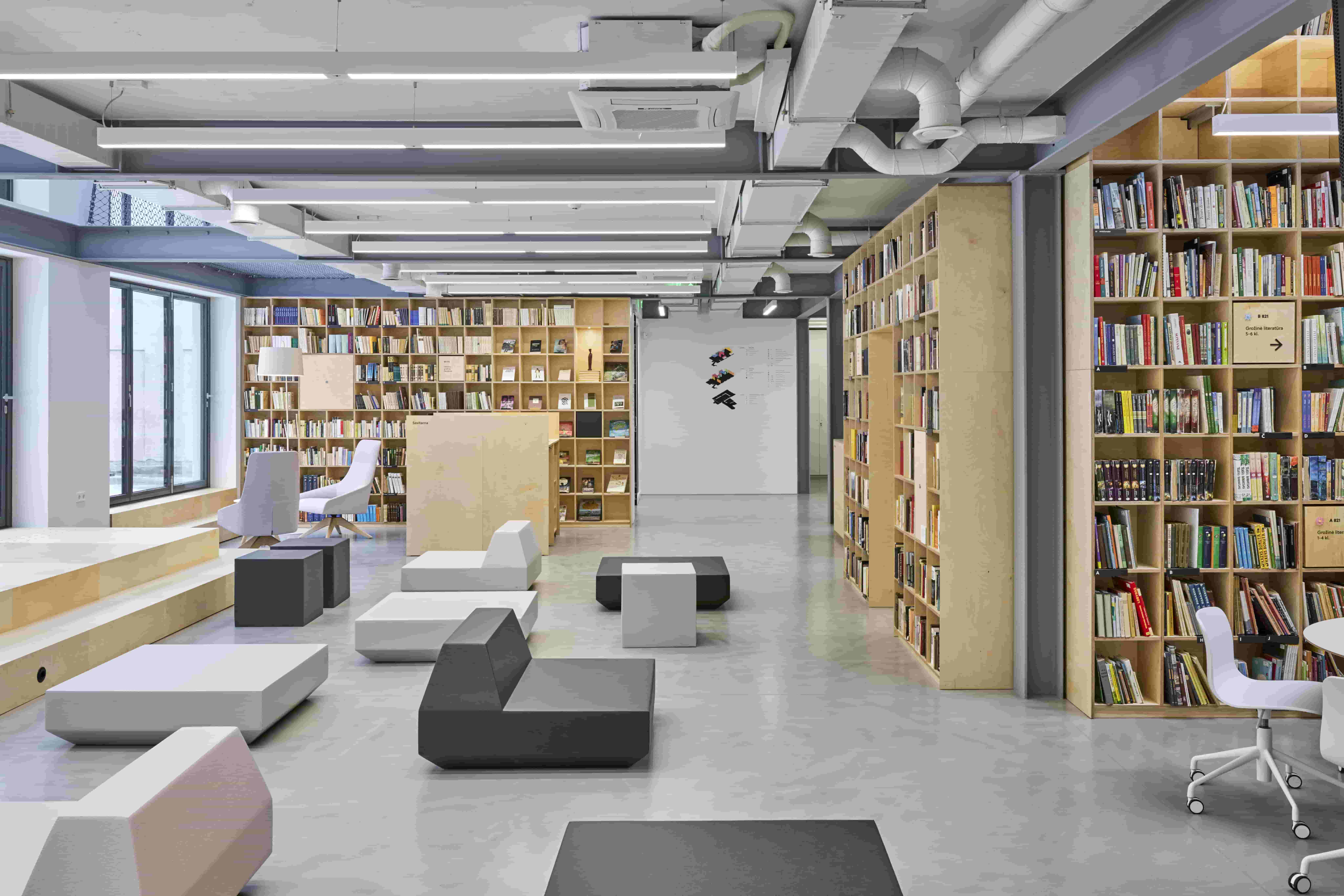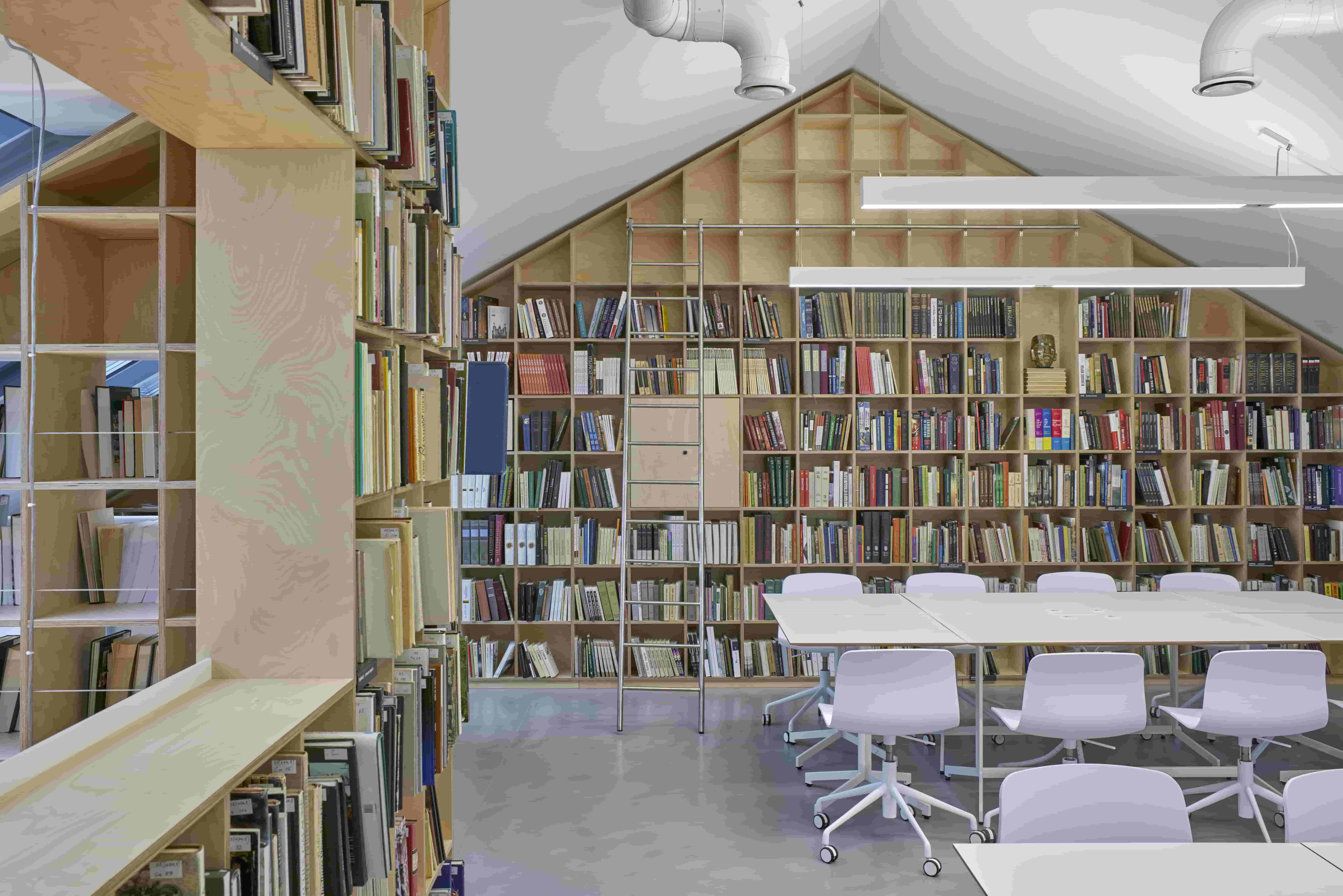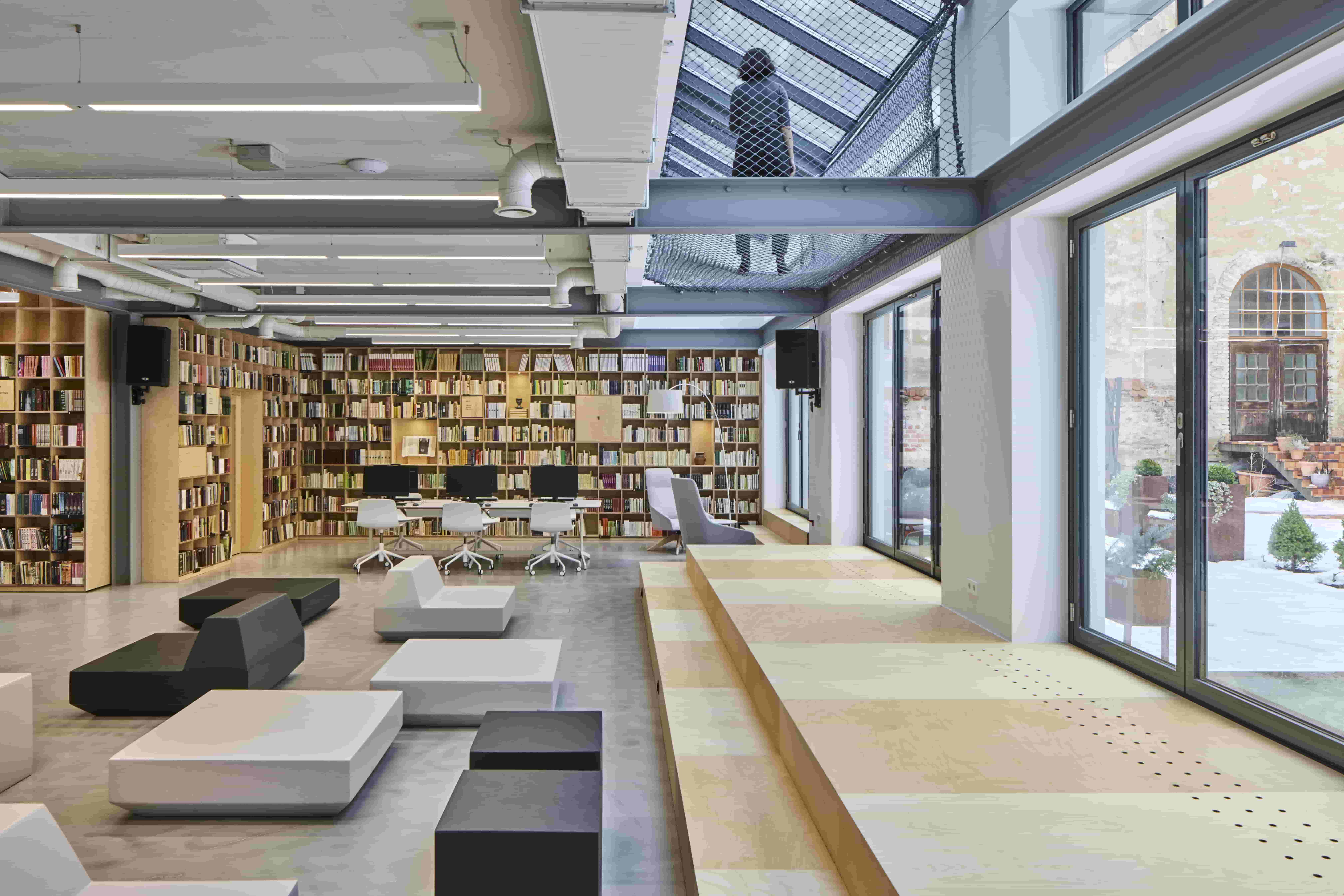 Lojoteka. Edukacinis medijų centras – šiuolaikiška pažinimo ir edukacinė erdvė, skirta gimnazijos bendruomenei ir visuomenei. Lojoteka išplečia tipinės mokyklos bibliotekos ribas – tai moderni, kūrybiškumą skatinanti pažinimo ir edukacinė erdvė. Medijų centre yra knygų saugykla, skaitykla, konferencijų, susitikimų, laisvalaikio erdvės, garso ir vaizdo įrašų bei fotografijos studijos, jaukios individualių ir grupinių darbų patalpos, Jėzuitų bibliotekos fondų katalogo saugykla, lauko terasa.Tai moderni, atvira ir funkcionali erdvė, lengvai pritaikoma individualiam ar grupiniam ugdymosi procesui, edukaciniams eksperimentams, jaukiems susibūrimams, saviugdai, bendravimui ir turiningam laisvalaikiui. Lojoteka. This Educational Media Centre provides a modern cognitive and educational space for the gymnasium community and related public. Lojoteka expands the boundaries of a typical school library, being a modern cognitive and educational space that promotes creativity. The media centre comprises a book depository, a reading room, spaces for conferences, meetings and leisure, audio, video and photography studios, cosy rooms for individual and group work, the Jesuit Library's catalogue room as well as an outdoor terrace. It is a modern, open and functional space easily adjusted for individual or group learning process, educational experiments, cosy gatherings, self-development, communication and meaningful leisure.