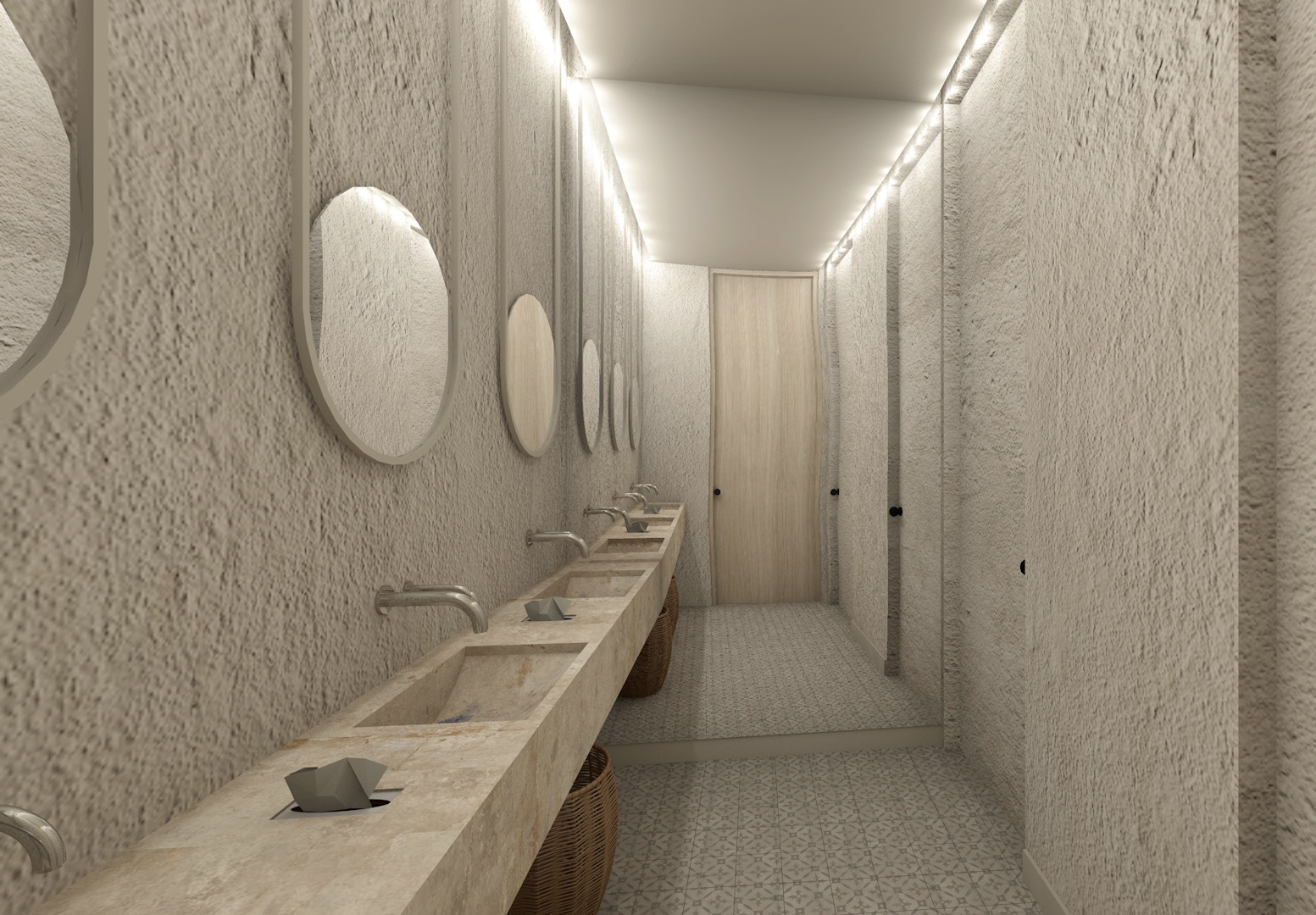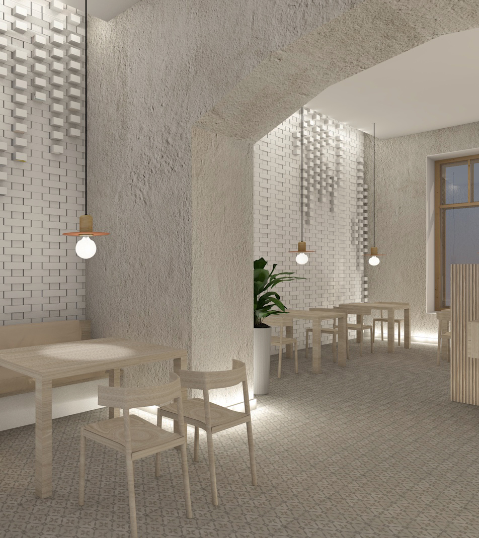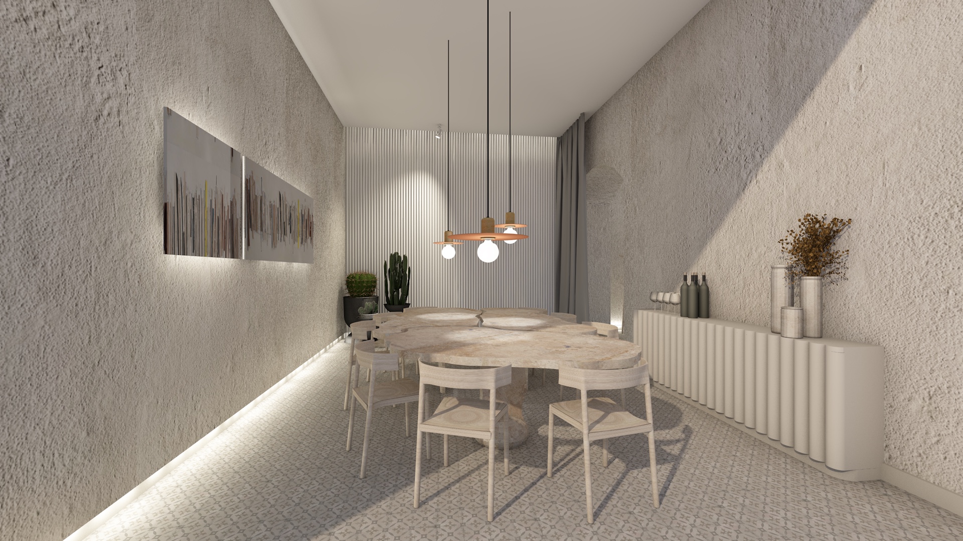 Šiame kūrybos procese buvo stengtąsi į charizmatišką, spalvingą Meksikos kultūrą ir stilistiką pažvelgti iš kitos, mums neįprastos perspektyvos. Interjero inspiracija tapę Meksikos gamtos fragmentai iš „Kasha-Katuwe Tent Rocks National Monument“, kurie padėjo išgryninti spalvų koloritą, faktūras bei vyraujančią nuotaiką. In the creative process I tried to look at the charismatic, colourful Mexican culture and the stylistic features of the country from a different perspective. The interior was inspired by fragments from the Mexican nature such as „Kasha-Katuwe Tent Rocks National Monument“ - it helped to refine the colour scheme, texture and the overall atmosphere.