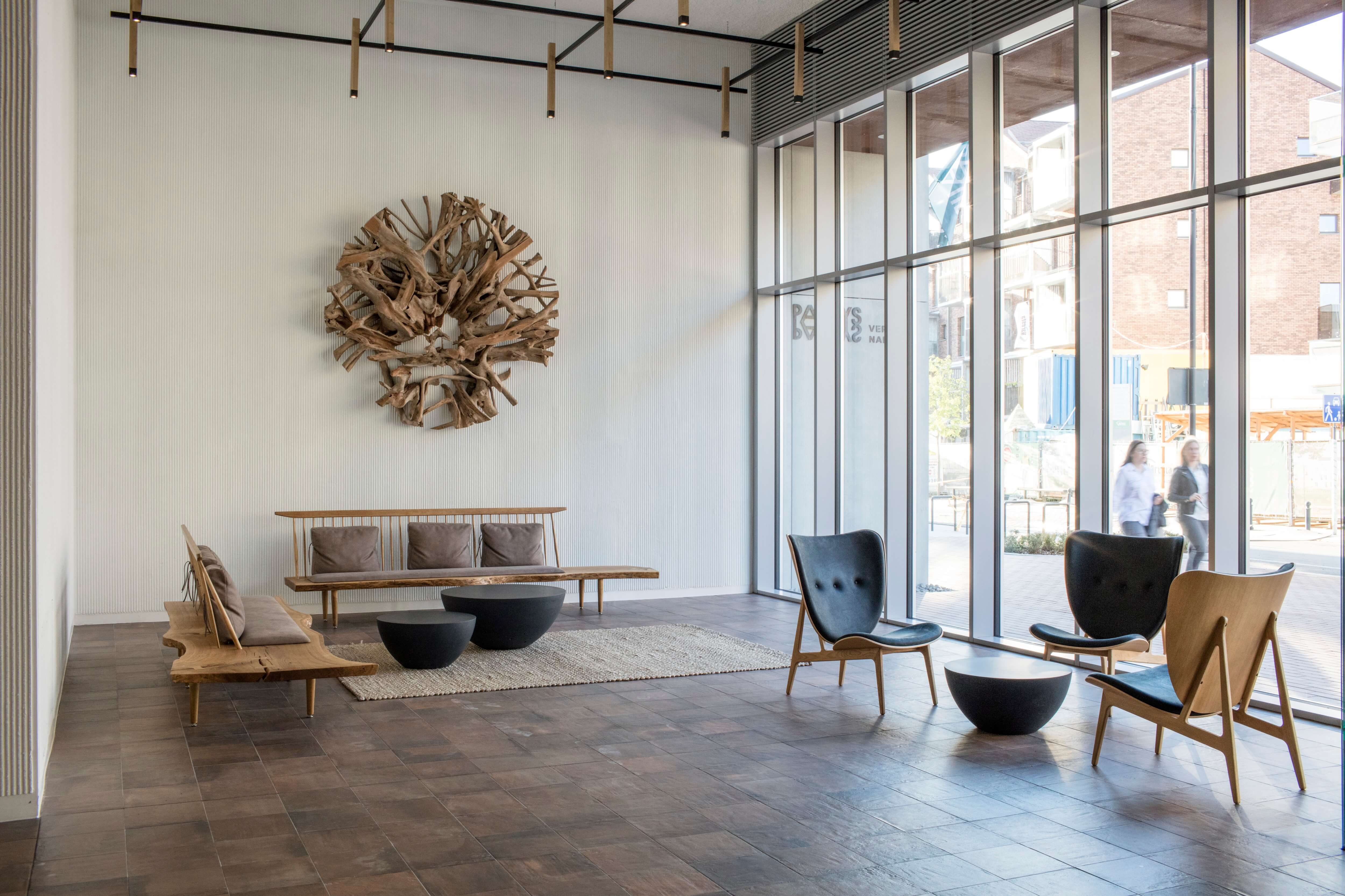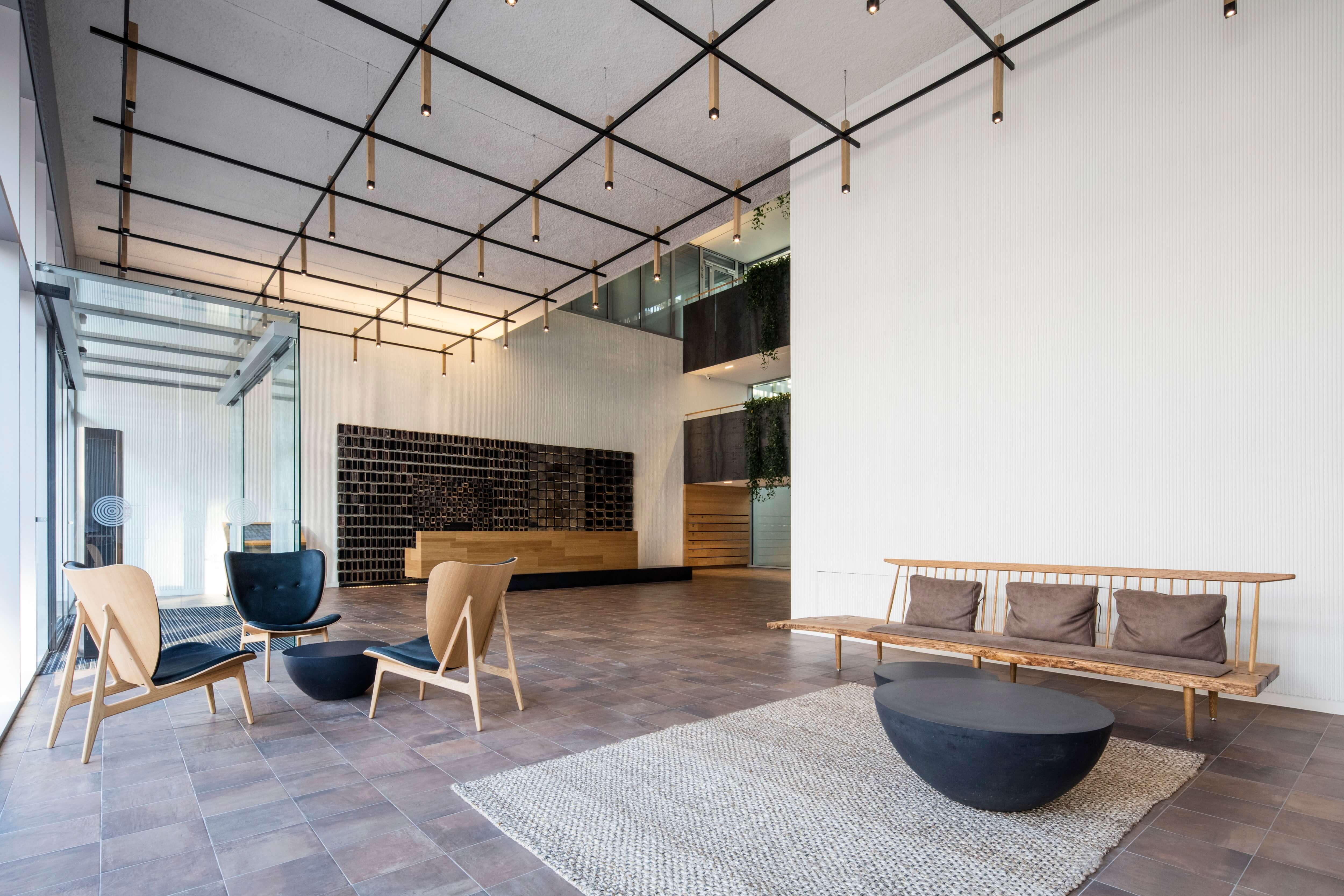 Viešųjų erdvių interjero koncepcija kuriama ieškant dėrmės su neo-industrine Paupio verslo namų architektūra. Projektuojant vadovautasi wabi-sabi principais, tai Japonijos estetikos filosofija, atsiradusi dzenbudizme. Wabi Sabi pagrindinės savybės: minimalizmas, kuklumas, išskirtinumas, unikalios nelygios formos. Apibendrinus - tobulumo paieškos netobulume.